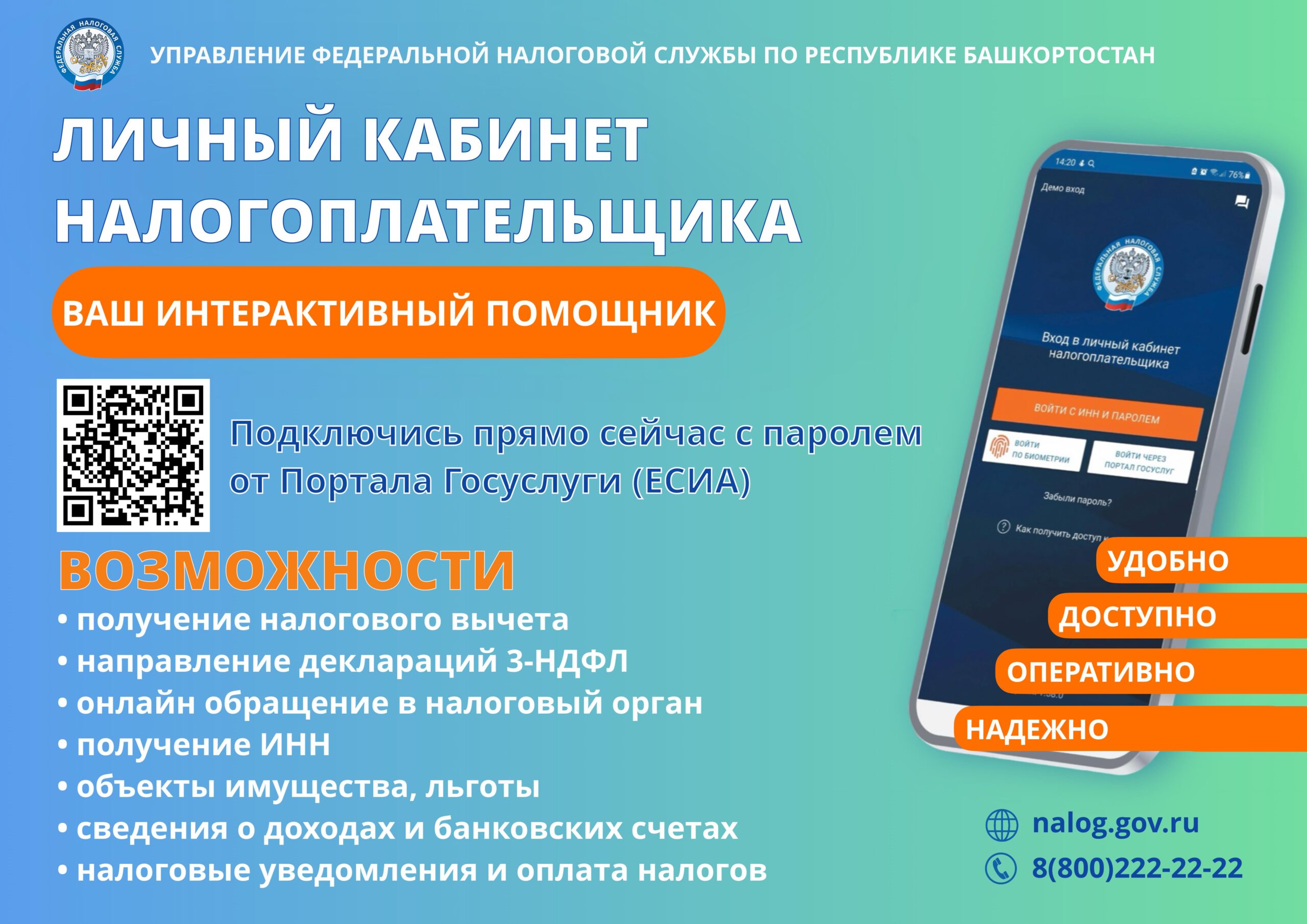 Более подробную информацию о возможностях Личного кабинета можно узнать на сайте ФНС России либо по телефону Единого контакт-центра ФНС России 8-800-222-22-22.